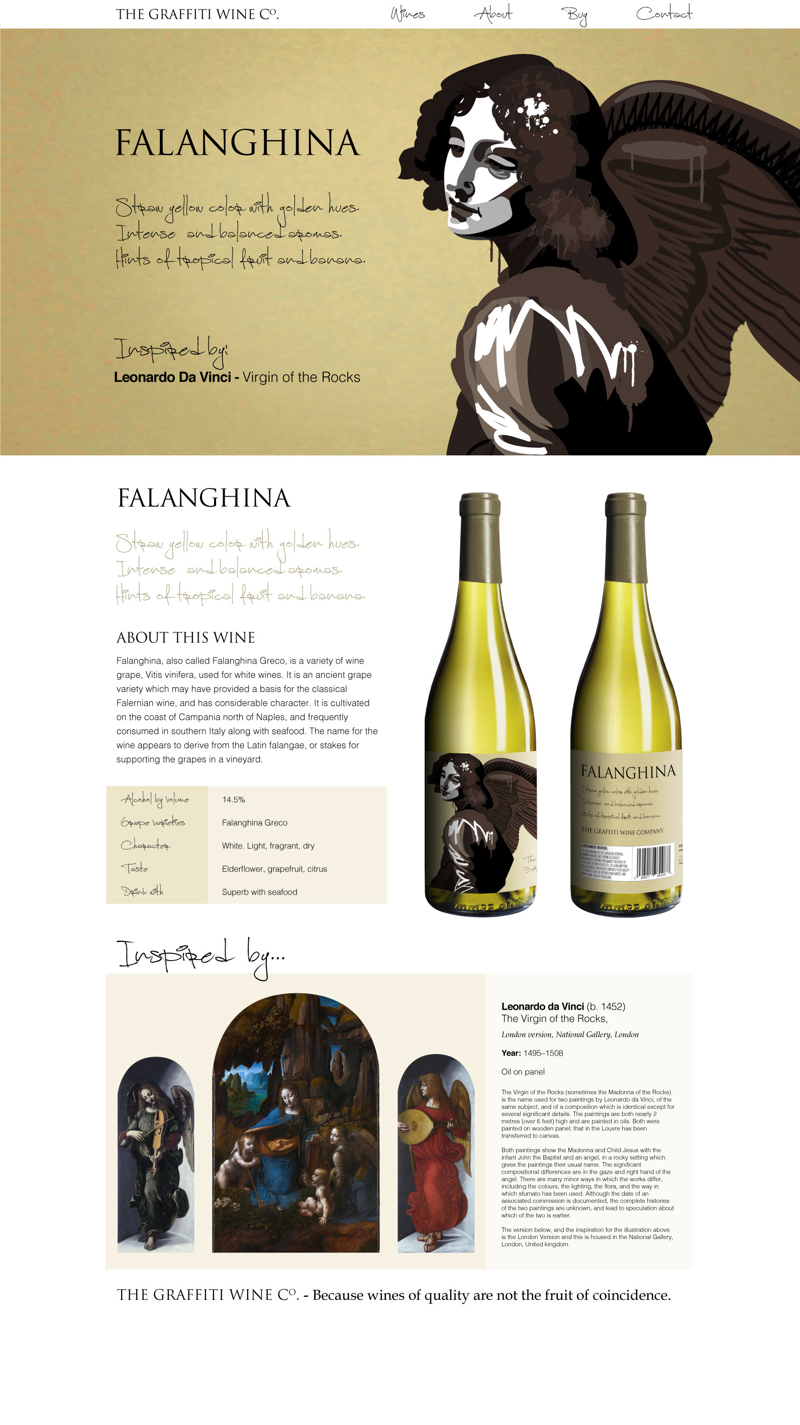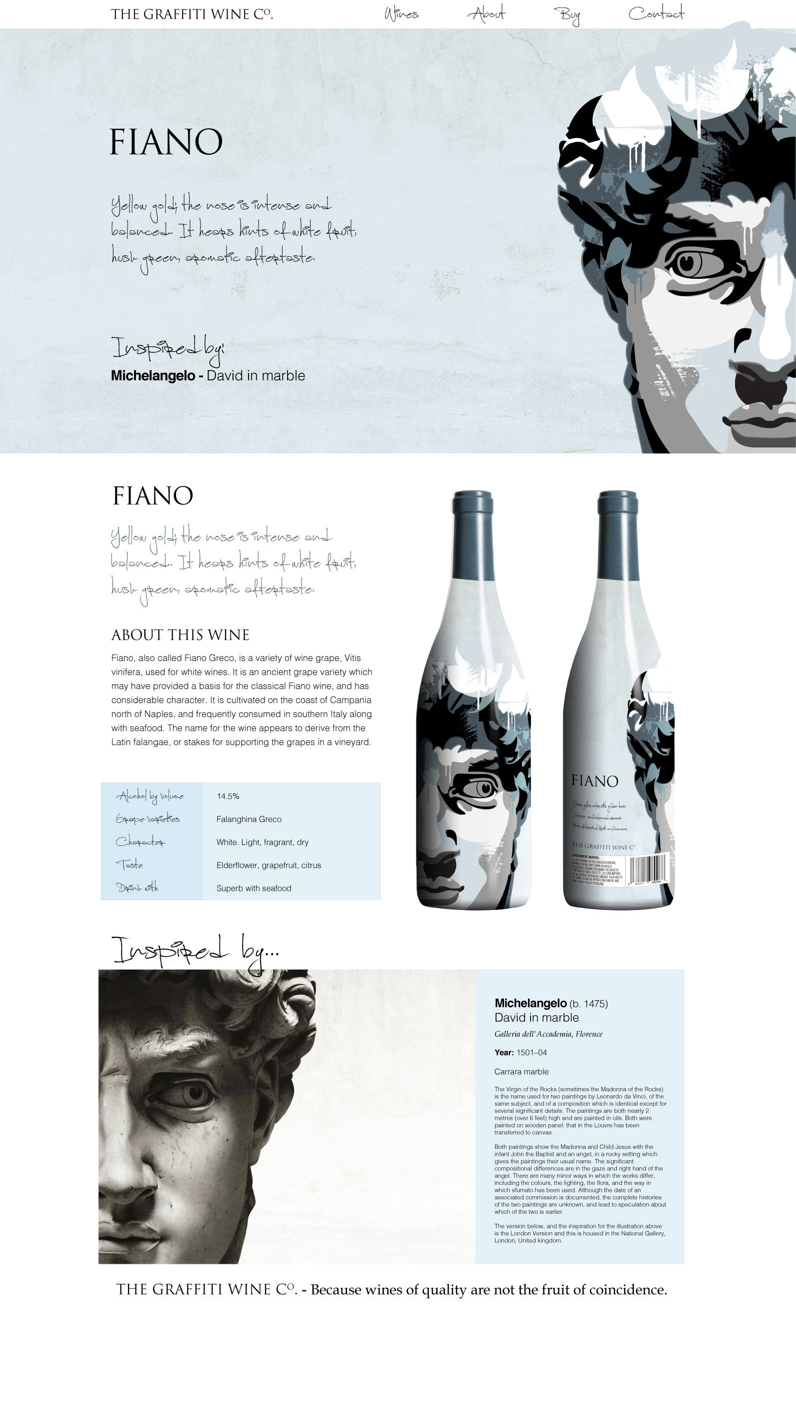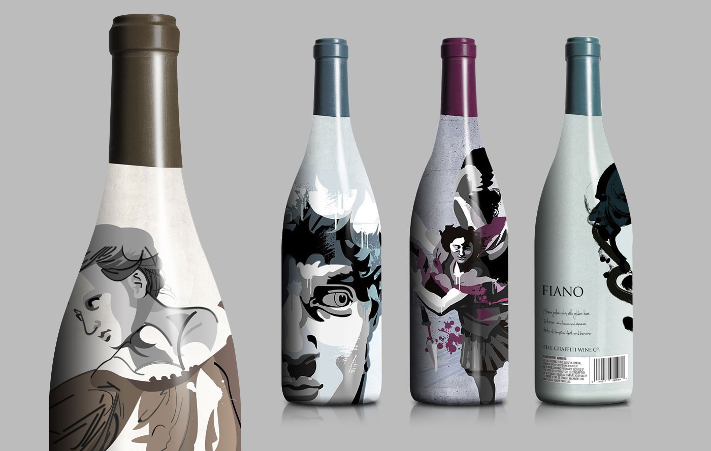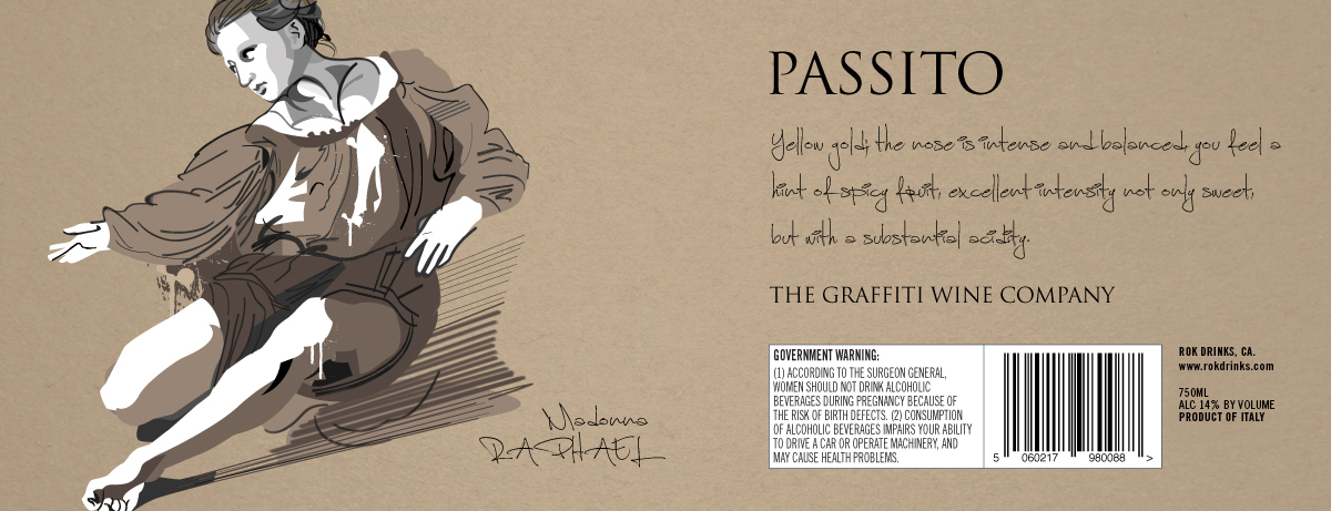Italian wines for the US market. Creative concept, illustration and design for wine bottles and packaging. Artwork inspired by the works of Italian Renaissance artists and fused with the street art of Milan, Naples and Rome. I produced designs for full bottle wraps and standard labels, with branding and website concepts, design, build and content creation.