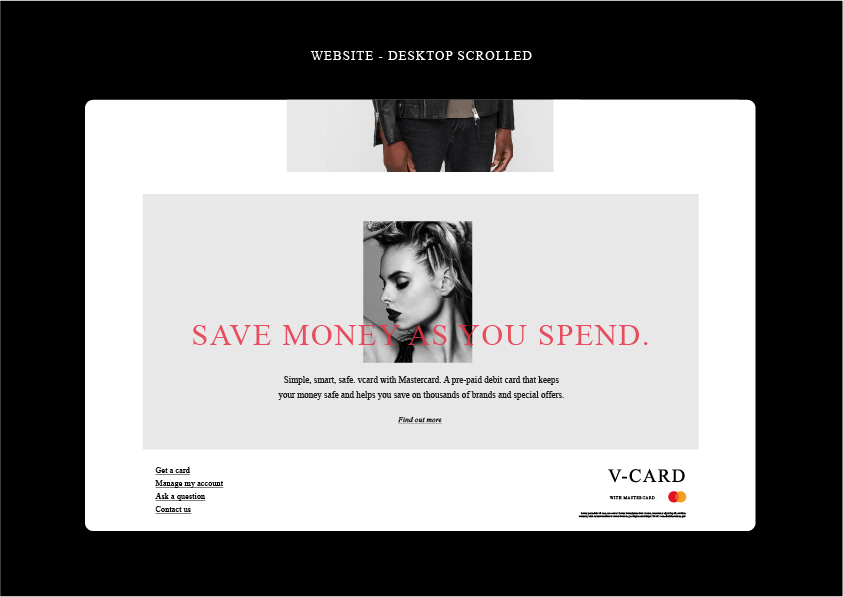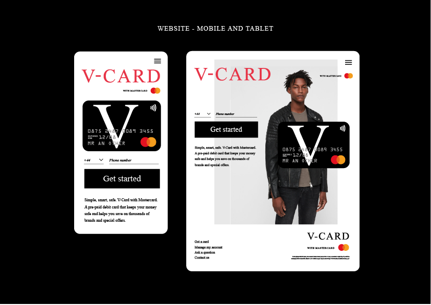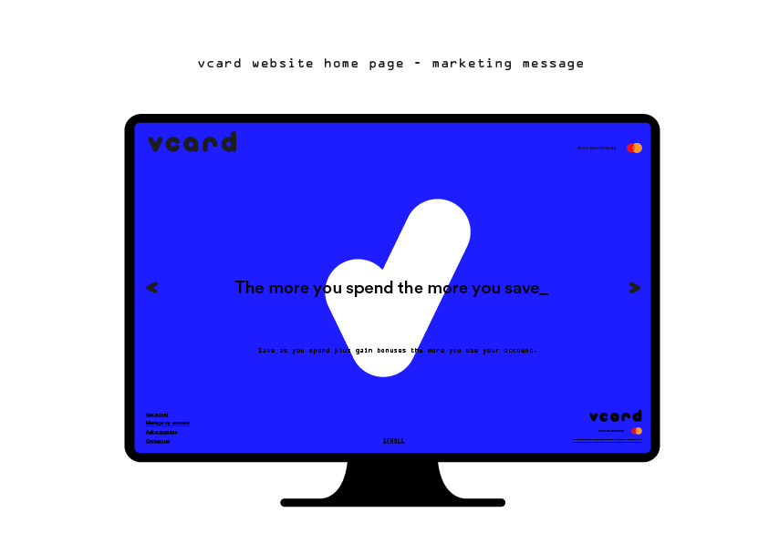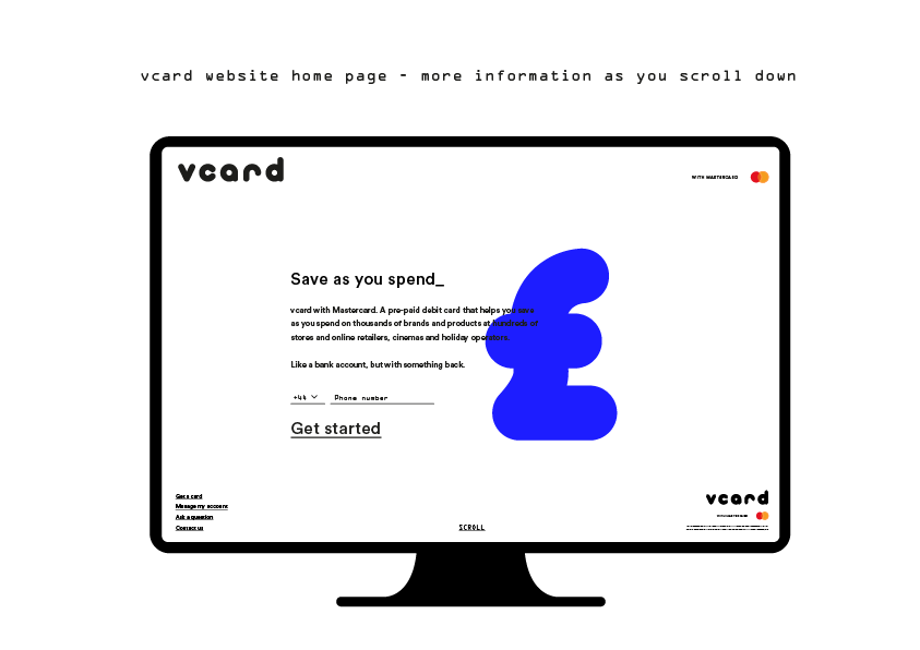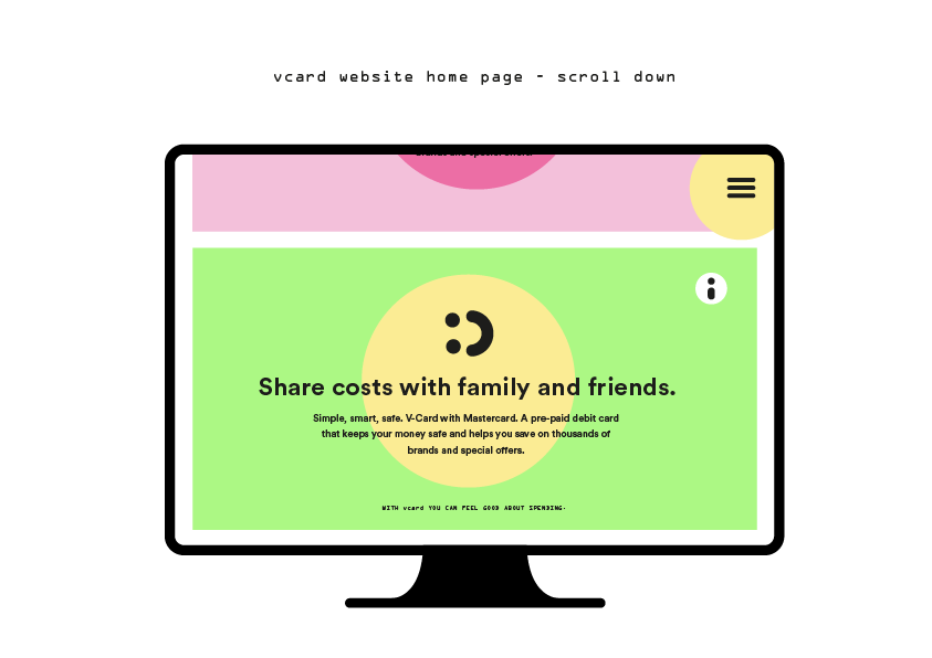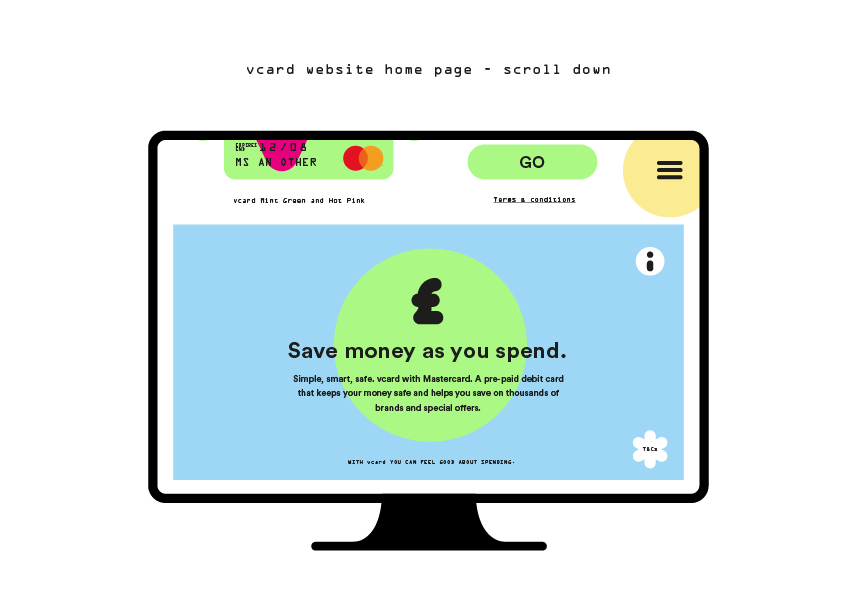 Branding, identity and UI design for a pre-paid Mastercard provider. The project included physical card design, UI design and prototyping of sign-up website and account management application plus the development of a custom graphic language to support the Vcard branding. Clean minimal design and cool colourways. Choose the combination that best fits your world or create your own from a pallet of over 30 colours.