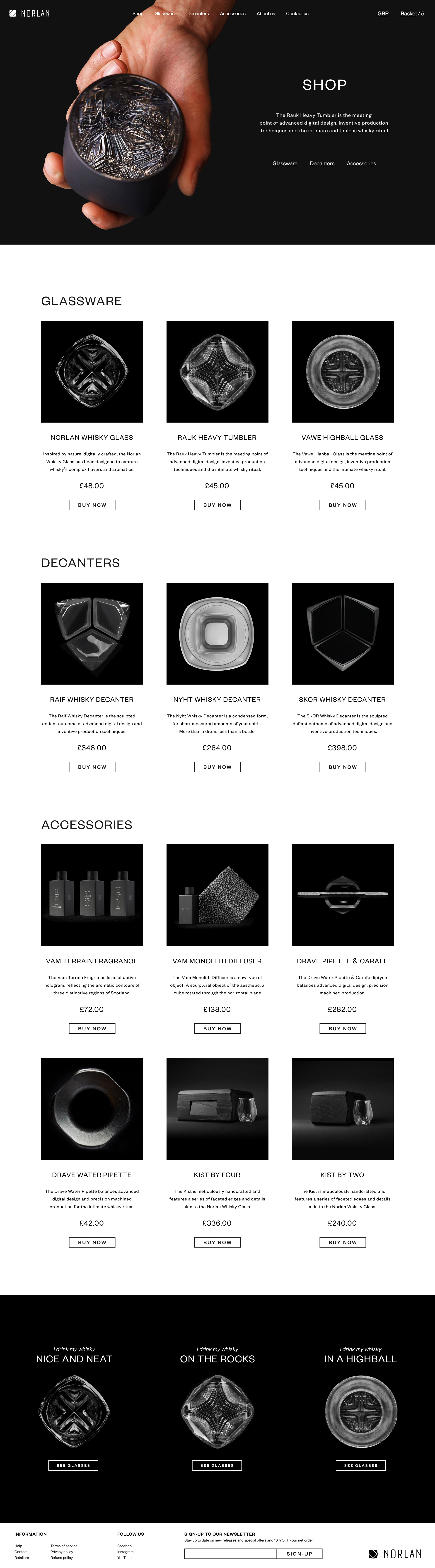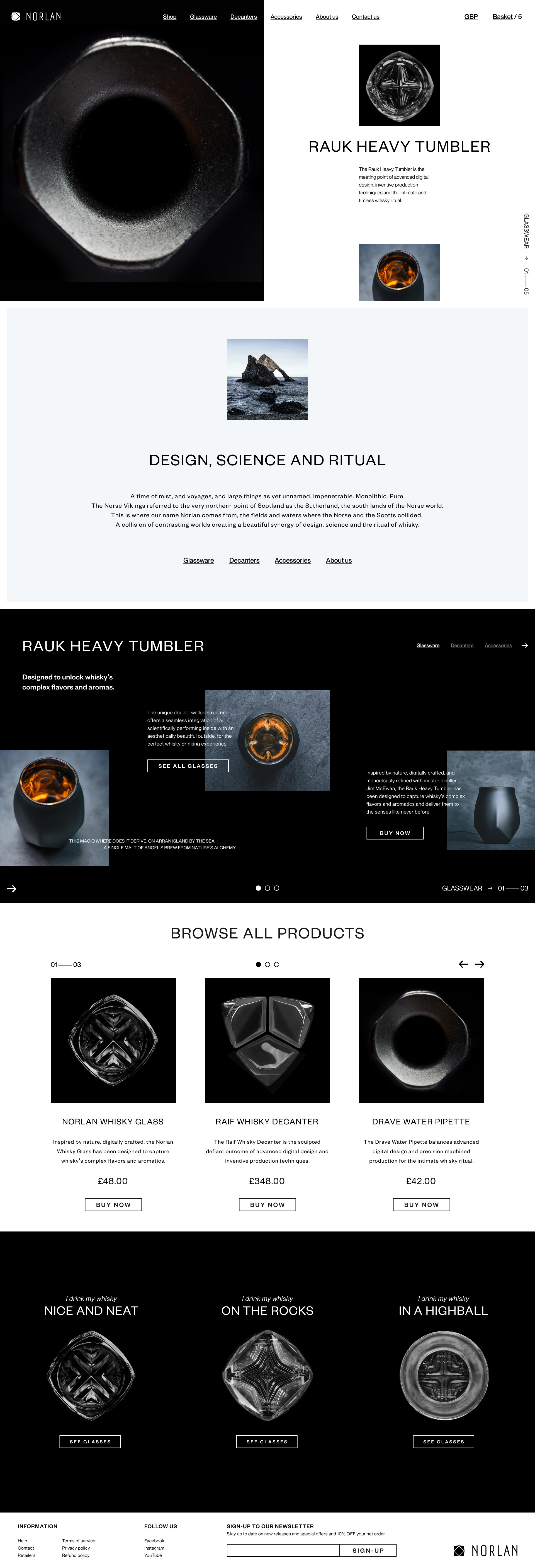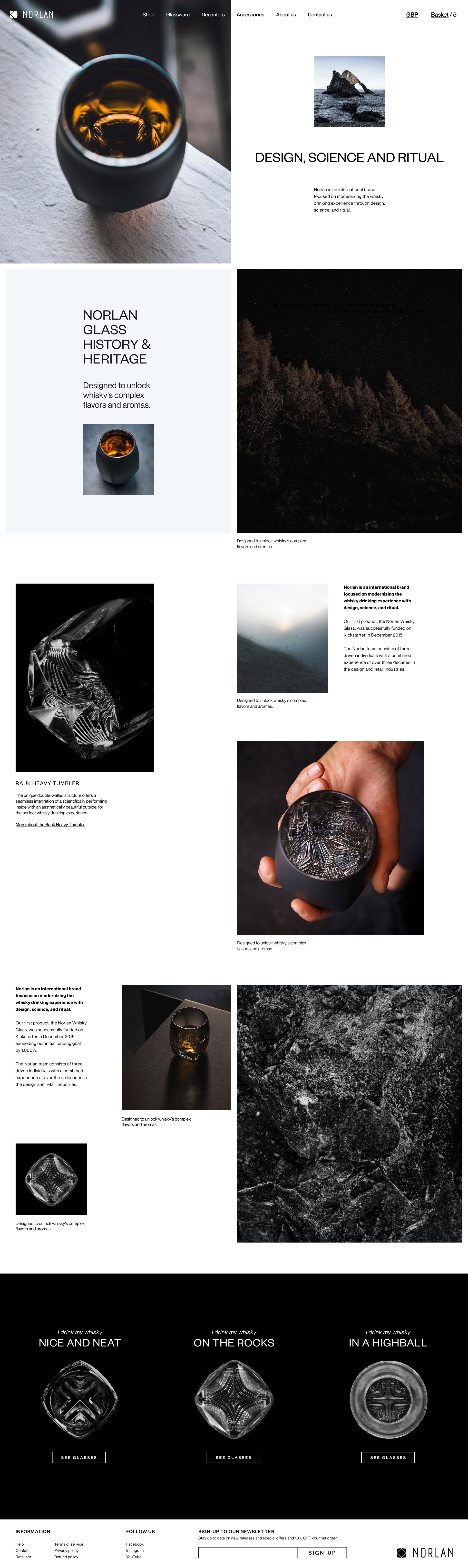 Creative exploration, art direction, website design and UI kit / design system for Norlan Glass website proposal.